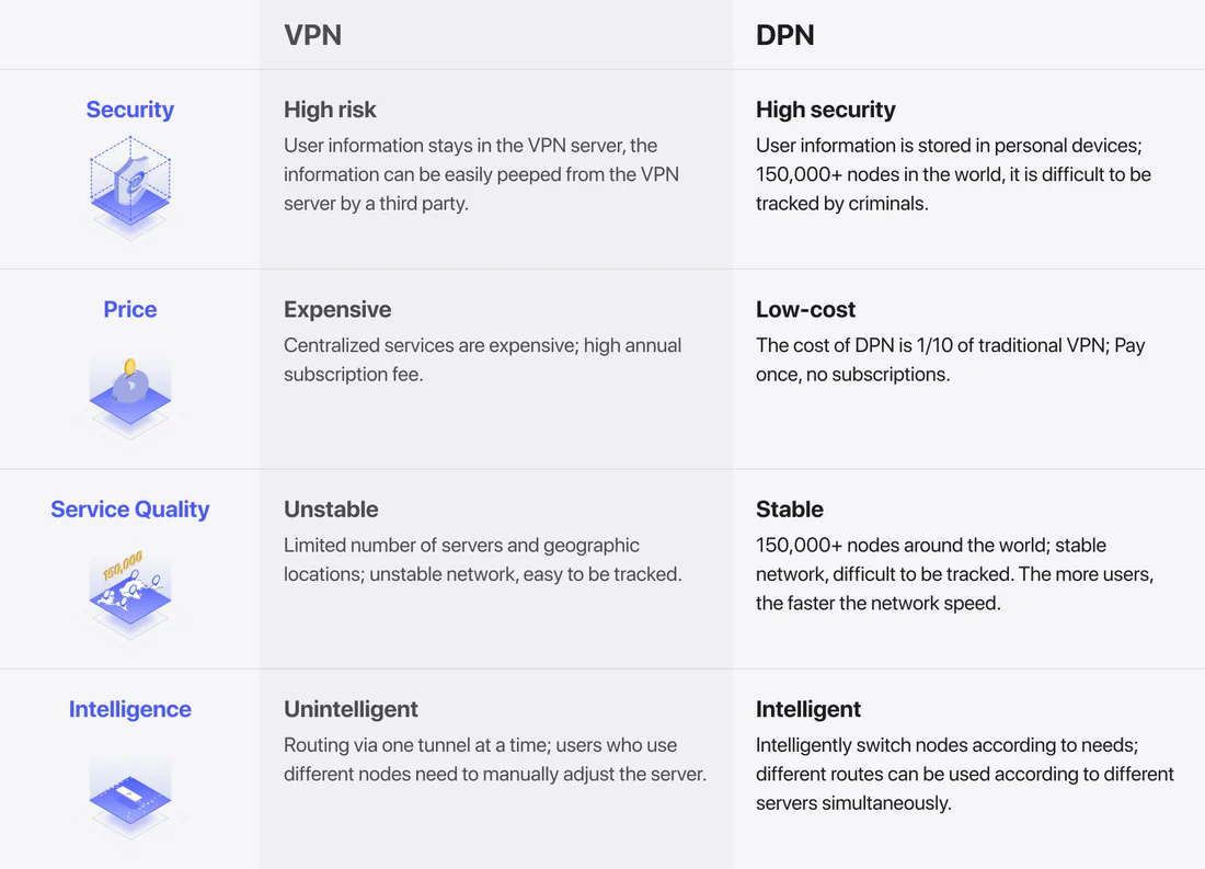 DPN siūlo VPN privalumus be jokios centralizuotos kontrolės!